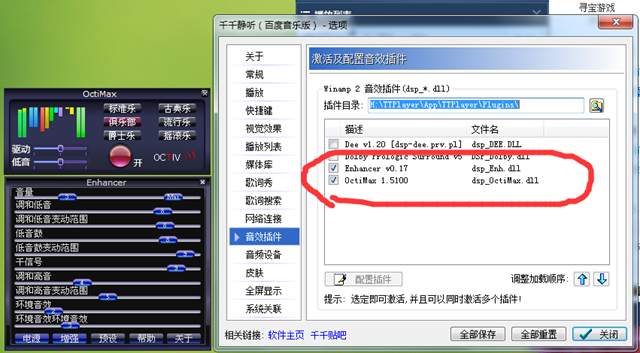 然后忽然想起千千静听本身还带有几个音效插件